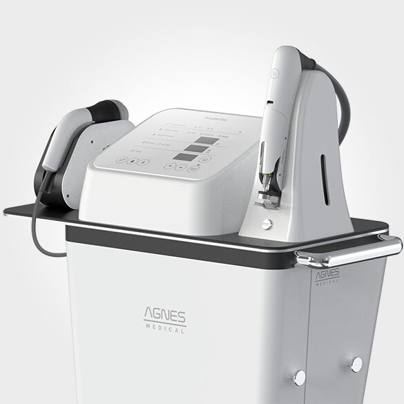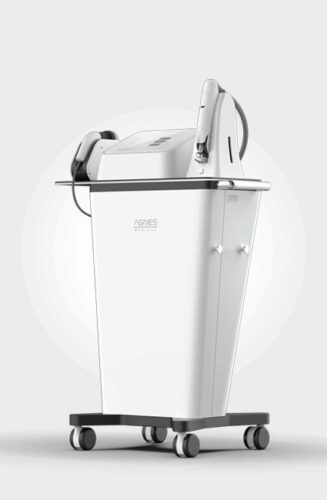 - RF met gepatenteerde micronaaldjes – gericht op de papillaire en reticulaire dermis. De huid wordt tot 42°C verwarmd